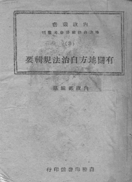 | 网盘路径:/时光图书馆珍藏系列/书籍文件/老图书/《有关地方自治法规辑要》电子版合集.db | ||