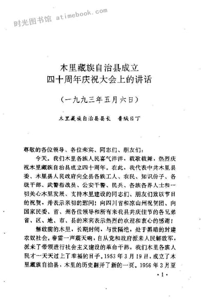 2-木里藏族自治县成立四十周年庆祝大会上的讲话(鲁绒日丁)