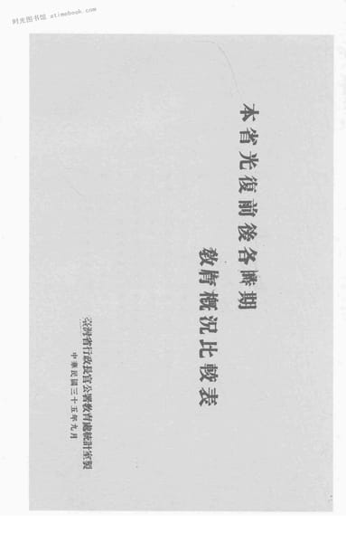 | 网盘路径:/时光图书馆珍藏系列/书籍文件/老图书/《本省光复前后各时期教育概况比较表》电子版合集.db | ||