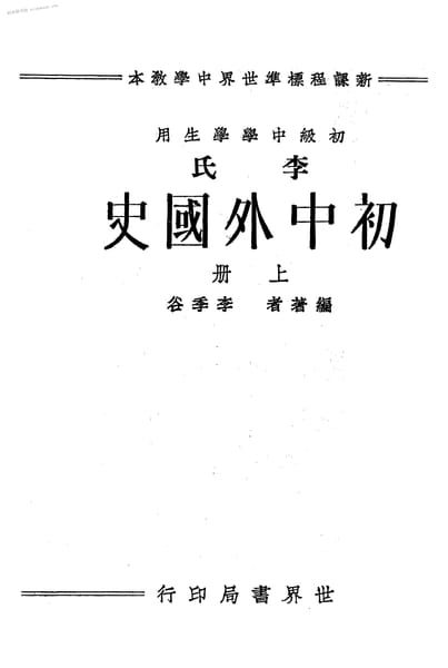 | 网盘路径:/时光图书馆珍藏系列/书籍文件/老图书/《李氏初中外国史_上册》电子版合集.db | ||