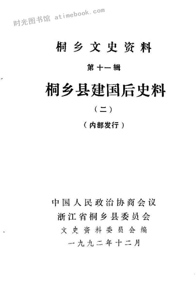 | 网盘路径:/时光图书馆珍藏系列/书籍文件/老图书/《桐乡文史资料_第11辑_桐乡县建国后史料(2)》电子版合集.db | ||