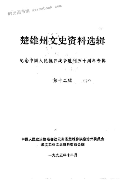 | 网盘路径:/时光图书馆珍藏系列/书籍文件/老图书/《楚雄州文史资料选辑_第12辑_纪念中国人民抗日战争胜利50周年专辑》电子版合集.db | ||