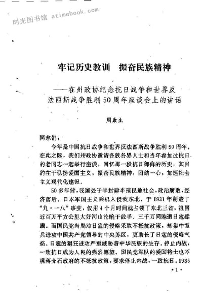 2-牢记历史教训振奋民族精神—一在州*纪念抗日战争和世界反法西斯战争胜利50周年座谈会上的讲话