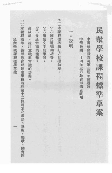| 网盘路径:/时光图书馆珍藏系列/书籍文件/老图书/《民众学校课程标准草案》电子版合集.db | ||