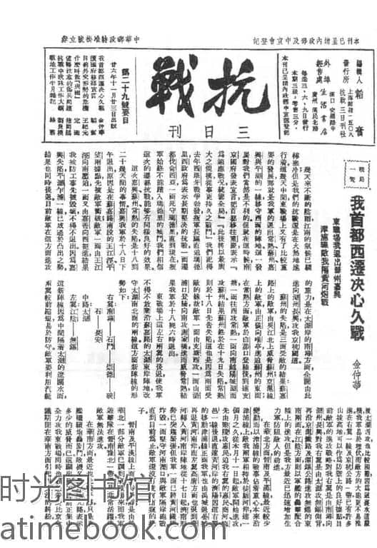 | 网盘路径:/时光图书馆珍藏系列/书籍文件/老杂志、老期刊/民国期刊/上海/《抗战》(上海)1937-1938年合集.db | ||