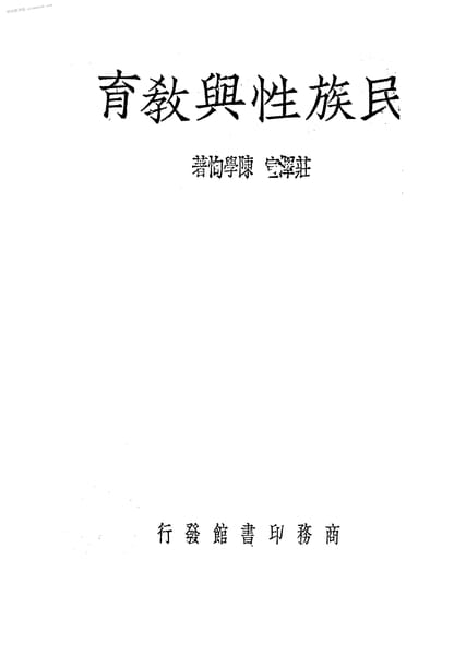 | 网盘路径:/时光图书馆珍藏系列/书籍文件/老图书/《民族性与教育》电子版合集.db | ||