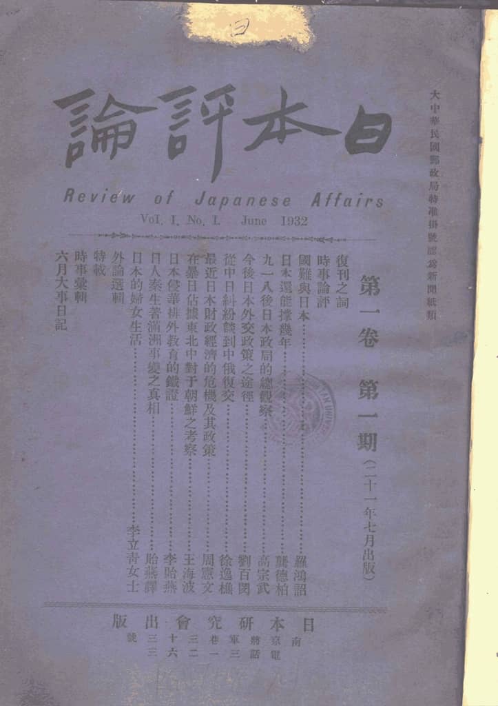 老期刊–《日本评论》(南京)1932-1943年合集 电子版