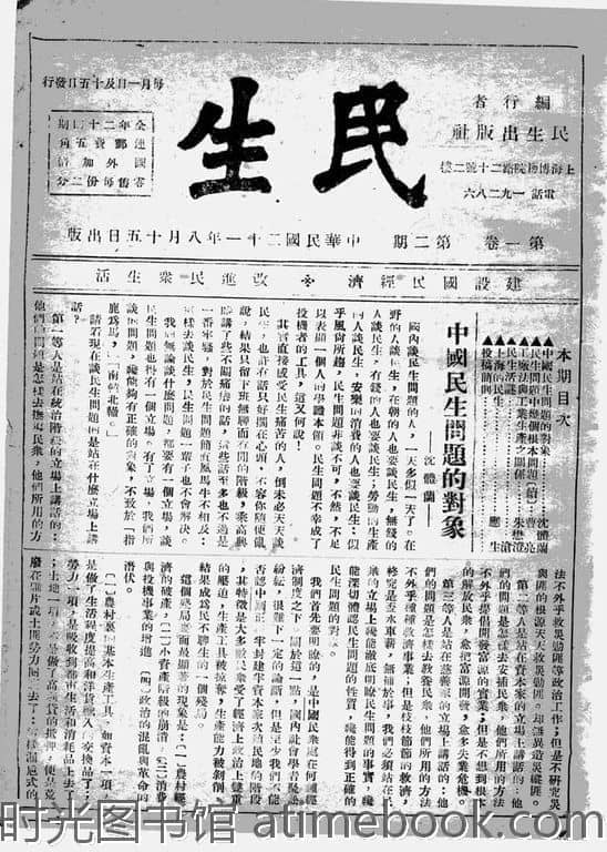 | 网盘路径:/时光图书馆珍藏系列/书籍文件/老杂志、老期刊/民国期刊/上海/《民生》(上海)1932-1933年合集.db | ||