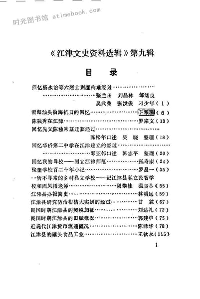 | 网盘路径:/时光图书馆珍藏系列/书籍文件/老图书/《江津文史资料选辑_第9辑》电子版合集.db | ||