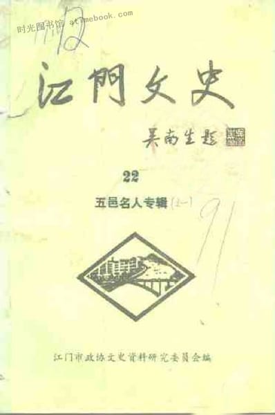 | 网盘路径:/时光图书馆珍藏系列/书籍文件/老图书/《江门文史_第22辑_五邑名人专辑》电子版合集.db | ||