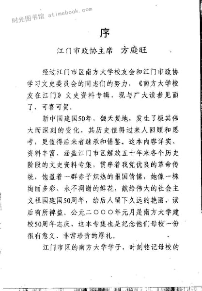 | 网盘路径:/时光图书馆珍藏系列/书籍文件/老图书/《江门文史_第36辑_南方大学校友在江门》电子版合集.db | ||