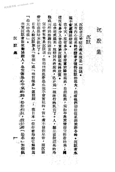 | 网盘路径:/时光图书馆珍藏系列/书籍文件/老图书/《沉默集》电子版合集.db | ||