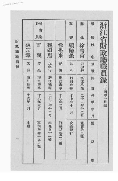 | 网盘路径:/时光图书馆珍藏系列/书籍文件/老图书/《浙江省财政厅职员录》电子版合集.db | ||