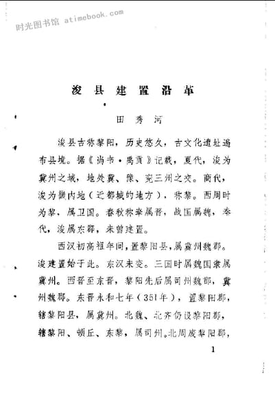 | 网盘路径:/时光图书馆珍藏系列/书籍文件/老图书/《浚县文史资料_第1辑》电子版合集.db | ||