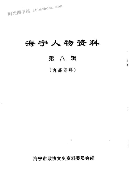 | 网盘路径:/时光图书馆珍藏系列/书籍文件/老图书/《海宁人物资料_第8辑》电子版合集.db | ||