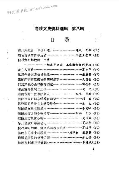 | 网盘路径:/时光图书馆珍藏系列/书籍文件/老图书/《涪陵文史资料选辑_1989年_第1辑_总第8辑》电子版合集.db | ||