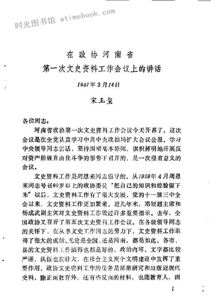 2-在*河南省第一次文史资料工作会议上的讲话宋玉玺