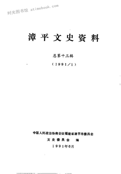 | 网盘路径:/时光图书馆珍藏系列/书籍文件/老图书/《漳平文史资料_1991年第1辑_总第13辑》电子版合集.db | ||