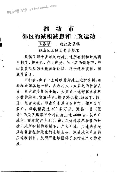 2-潍坊市郊区的减租减息和土改运动王春华赵孜勤供稿潍城区*文史委整理