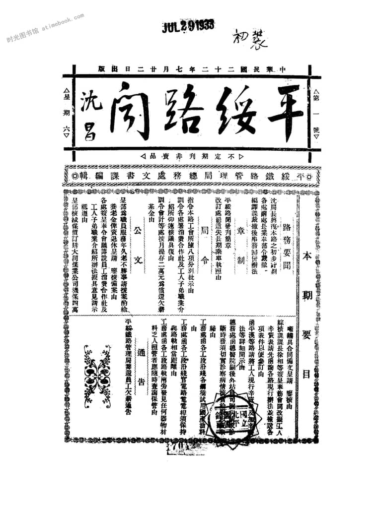 1933年总第1号(7月22日)