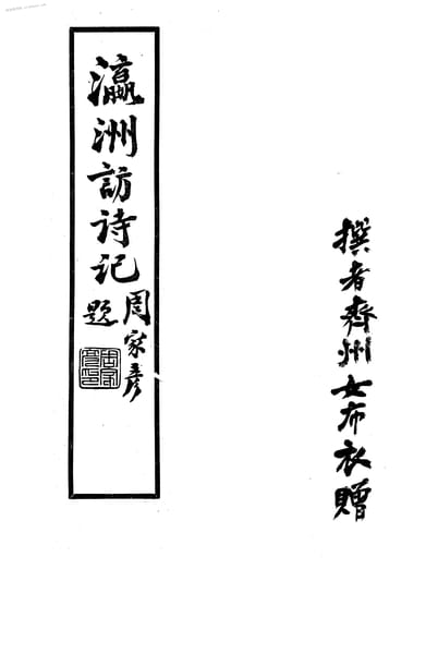 | 网盘路径:/时光图书馆珍藏系列/书籍文件/老图书/《瀛洲访诗记》电子版合集.db | ||