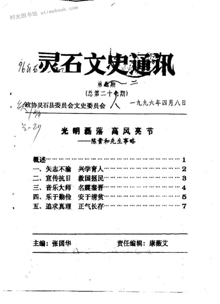 | 网盘路径:/时光图书馆珍藏系列/书籍文件/老图书/《灵石文史通讯_1996年第2至5辑_总第28-31辑》电子版合集.db | ||