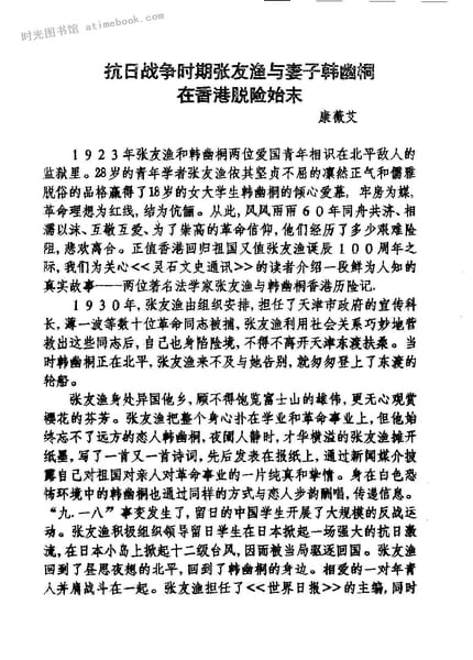 3-抗日战争时期张友渔与妻子韩幽桐在香港脱险始末