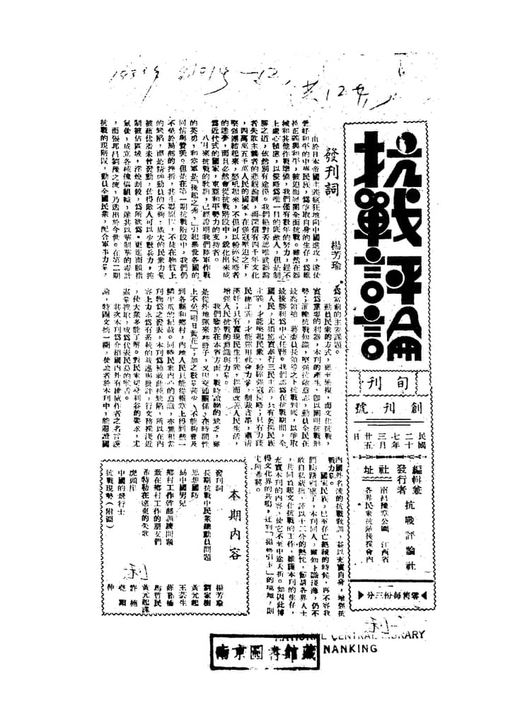 文件下载 | 名称:《抗战评论》(南昌)1938年合集 | |