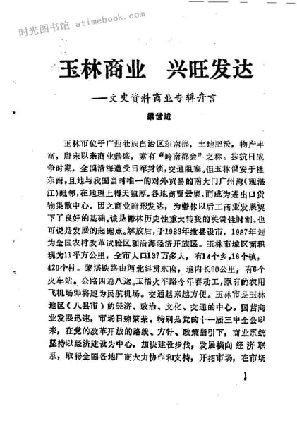 网盘路径:/时光图书馆珍藏系列/书籍文件/老图书/《玉林市文史资料_总25辑_商业局专辑》电子版合集.db
