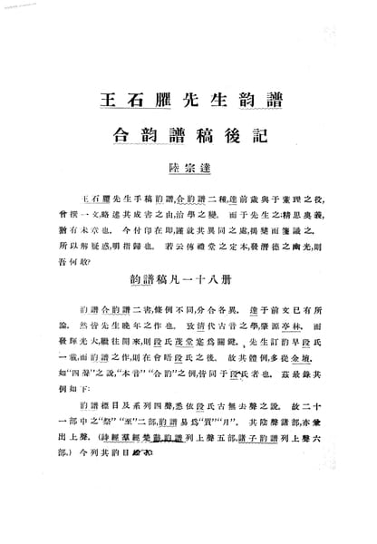 文件下载 | 名称:《玉石臞先生韵谱合韵谱稿后记》电子版合集 | |
