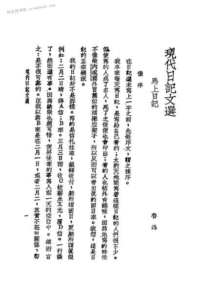 | 网盘路径:/时光图书馆珍藏系列/书籍文件/老图书/《现代日记文选》电子版合集.db | ||