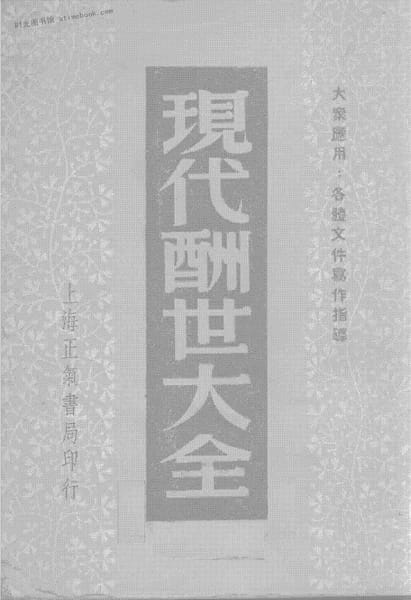 | 网盘路径:/时光图书馆珍藏系列/书籍文件/老图书/《现代酬世大全》电子版合集.db | ||