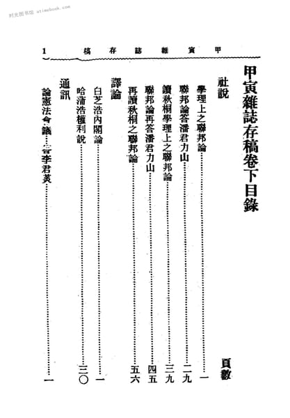 | 网盘路径:/时光图书馆珍藏系列/书籍文件/老图书/《甲寅杂志存稿(下)》电子版合集.db | ||