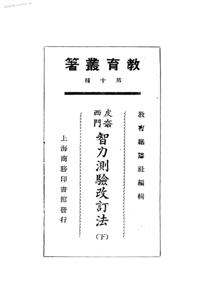| 网盘路径:/时光图书馆珍藏系列/书籍文件/老图书/《皮奈西门智力测验改订法下》电子版合集.db | ||