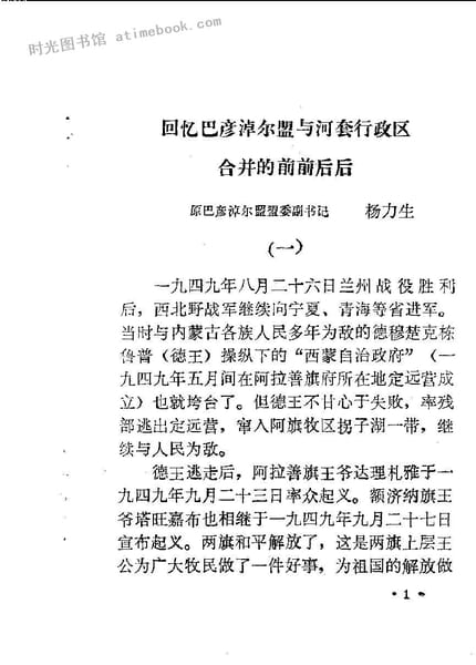 2-回忆巴彦淖尔盟与河套*区合并的前前后后原巴彥淖尔盟委副记杨力-1