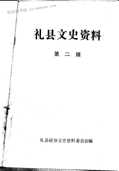 | 网盘路径:/时光图书馆珍藏系列/书籍文件/老图书/《礼县文史资料_第2辑》电子版合集.db | ||