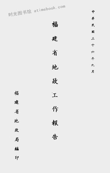 | 网盘路径:/时光图书馆珍藏系列/书籍文件/老图书/《福建省地政工作报告》电子版合集.db | ||