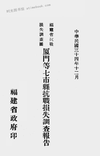 | 网盘路径:/时光图书馆珍藏系列/书籍文件/老图书/《福建省抗战损失调查团厦门等七市县抗战损失调查报告》电子版合集.db | ||