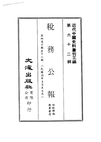 | 网盘路径:/时光图书馆珍藏系列/书籍文件/老图书/《税务公报第四卷十期至十二期(民国25年4月至6月)》电子版合集.db | ||