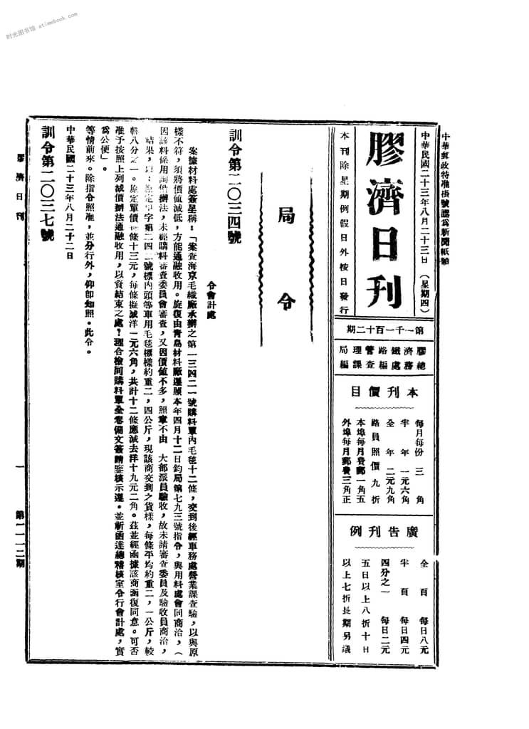 网盘路径:/时光图书馆珍藏系列/书籍文件/老杂志、老期刊/民国期刊/山东/《胶济日刊》(山东青岛)1934-1935年合集.db