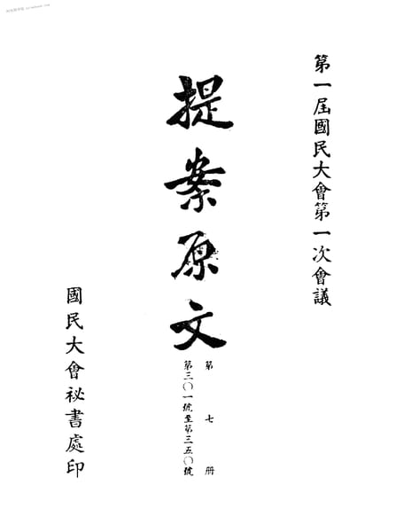 名称:《第一届国民大会第一次会议提案原文_第7册》电子版合集