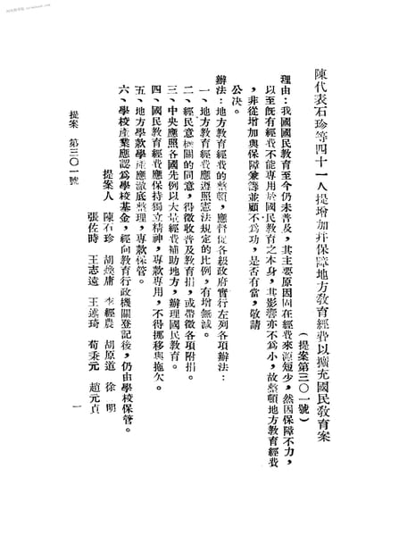 2-301陈代表石珍等四十一人提增加并保障地方教育经费以扩充国民教育案