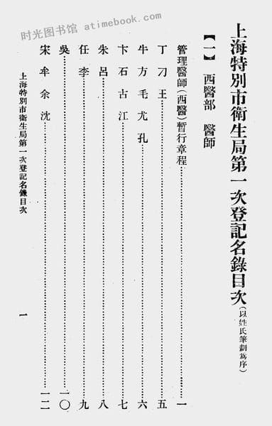 | 网盘路径:/时光图书馆珍藏系列/书籍文件/老图书/《第一次登记西医、助产、中医名录》电子版合集.db | ||
