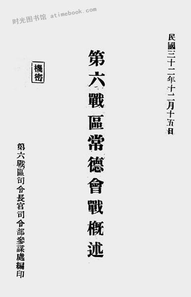 | 网盘路径:/时光图书馆珍藏系列/书籍文件/老图书/《第六战区常德会战概述》电子版合集.db | ||