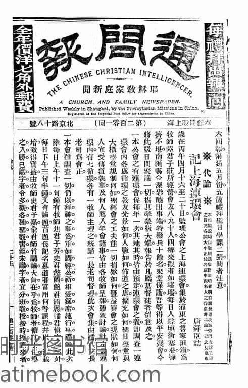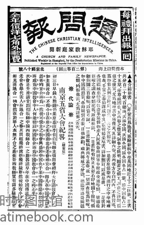 | 网盘路径:/时光图书馆珍藏系列/书籍文件/老报纸/上海/《通问报》(上海)1906-1921年合集.db | ||