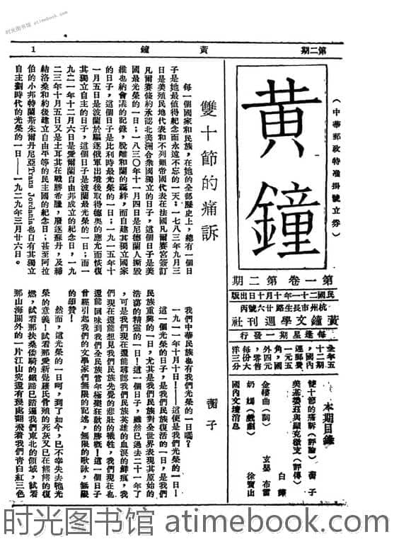 | 网盘路径:/时光图书馆珍藏系列/书籍文件/老杂志、老期刊/《黄钟》(黄钟文学社)1932-1937年合集.db | ||