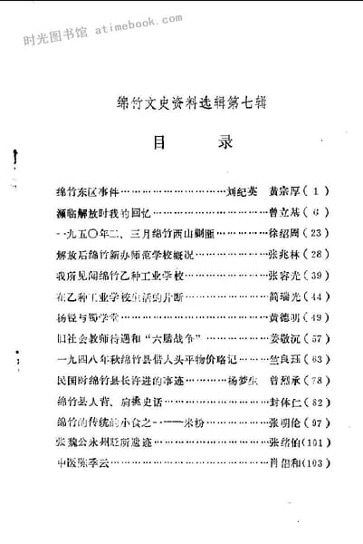 | 网盘路径:/时光图书馆珍藏系列/书籍文件/老图书/《绵竹文史资料选辑_第7辑》电子版合集.db | ||
