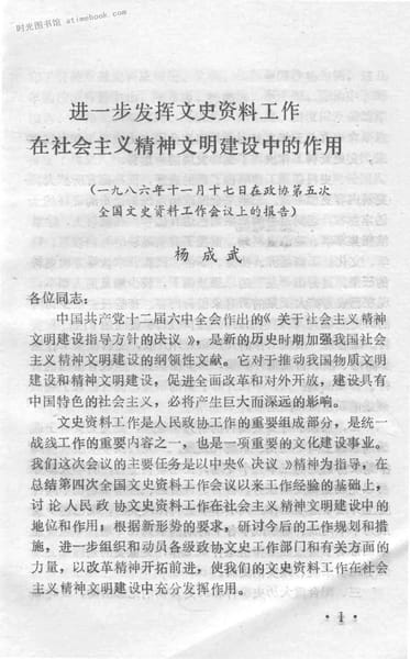 2-进一步发挥文史资料工作在社会主义精神文明建设中的作用在*第五次全国文史资料工作会议上的报告杨成武