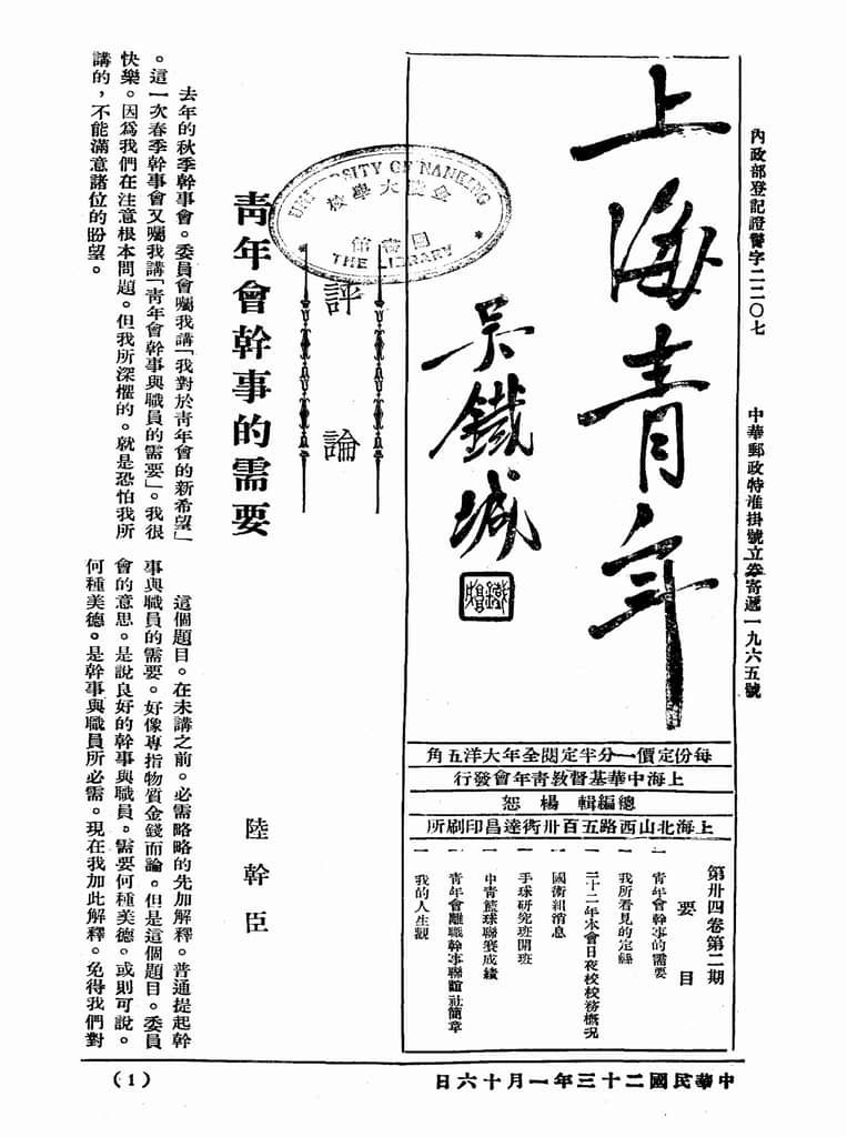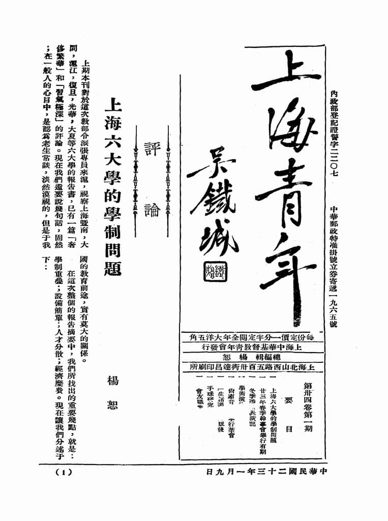 | 网盘路径:/时光图书馆珍藏系列/书籍文件/老杂志、老期刊/民国期刊/上海/《上海青年》(上海)1934-1947年合集.db | ||