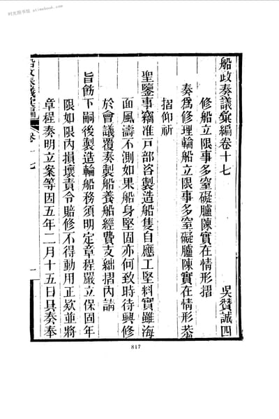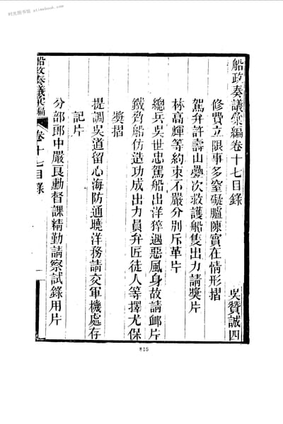 | 网盘路径:/时光图书馆珍藏系列/书籍文件/老图书/《船政奏疏汇编__卷17》电子版合集.db | ||